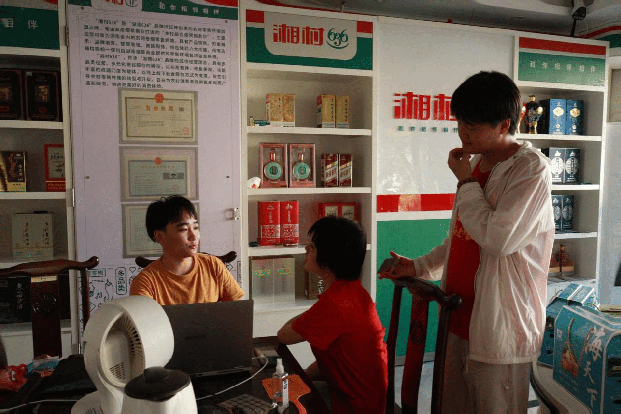 采访过程中,江友旺围绕着怡海村自2018年以来的发展向实践团介绍了生态果园,万亩荷花池等项目的建设带给当地村名方方面面的变化,以及自己成为便利店主和“湘村主播”的经历,其中,最触动实践团的并非仅是直播间里流畅的介绍和亮眼的销售数据,而是江友旺身上那份与年龄稍显不符的沉稳与扎根乡村的坚定。他坦言,成为乡村主播和便民店代理人,某种程度上是“机缘巧合”——正好政府有这个需求,而他愿意尝试。然而,这份“偶然”背后,却是一个年轻人主动选择留下、拥抱乡村发展的必然决心。