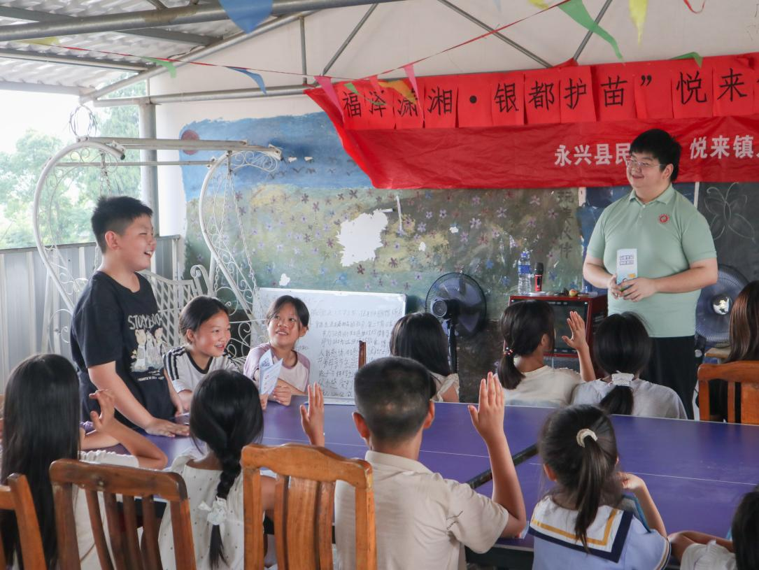7月11日上午,来自衡阳师范学院文学院“寸草心计划”——春晖育苗乡村振兴实践服务团,于上午九点准时与留守儿童相聚在郴州市永兴县悦来镇鸦鹊村“玩美伙伴”图书馆内,开展了一堂生动实用的防溺水安全教育课。此次活动旨在提升乡村儿童的暑期安全意识与自救能力,守护生命安全。