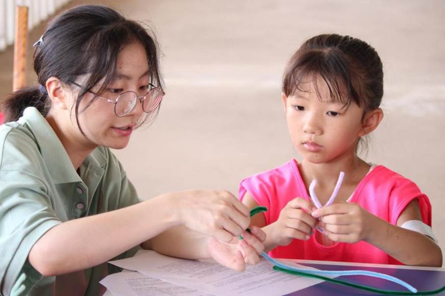 为丰富乡村儿童暑期生活,培养其动手能力、创造力和审美情趣,7月7日上午,衡阳师范学院文学院“寸草心计划”——春晖育苗乡村振兴实践服务团于郴州市永兴县鸦鹊村的“玩美伙伴”图书馆内开启了一场童趣与创意碰撞而出的“妙趣扭扭棒”手工活动,带领乡村留守儿童用五彩斑斓的扭扭棒,开启了一场指尖之上的创意之旅。