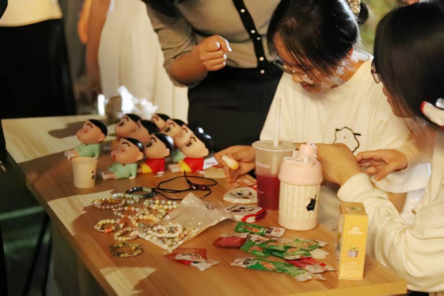 活动现场熙熙攘攘、热闹非凡,“逛一逛”“玩一玩”摊位前挤满了兴致勃勃的新生。同学们手持集章卡,逛今日限定手工小铺、中药香囊铺,还有琳琅满目的文创市集,在一针一线、一剪一贴中体验传统工艺与创意设计的魅力;玩琉璃共拾、诗笺寻序、书签互动、猜灯谜等趣味游戏,在动手实践与脑力挑战里收获欢笑。多姿多彩的摊位活动处处洋溢着青春活力,让新生们沉浸式感受校园文化,尽享迎新盛宴的别样精彩。