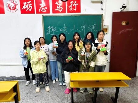 一张普通的彩纸,在指尖翻折、压痕、塑形间变幻万千。手工折纸课上,同学们凝神专注,循着老师指导的步骤悉心打磨每一道折痕,在一折一叠中,褪去浮躁,看着平面的纸张在自己手中逐渐立体成型,那份动手的乐趣和成就感溢于言表,让大家不仅在慢时光中感受到创作的力量,更收获内心的喜悦与对生活细节的热爱。