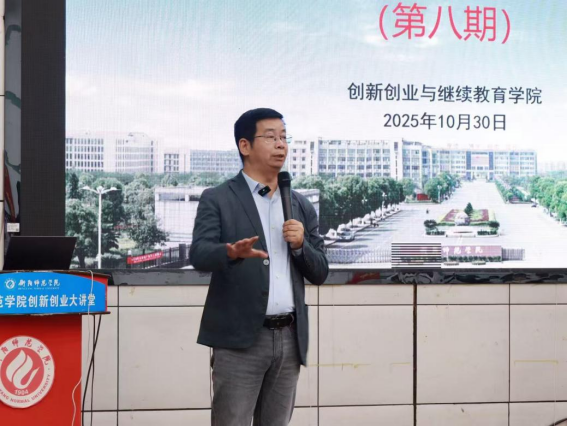 10月30日晚,我校第八期创新创业大讲堂在西校区模拟法庭顺利开讲。马克思主义学院陈亮伟博士作为主讲人,与特邀嘉宾文学院党总支书记张云峰、现代教育发展学院院长唐斯萍一道,为现场学子带来了一场聚焦“知识落地,能力对接市场”的双创专题讲座。