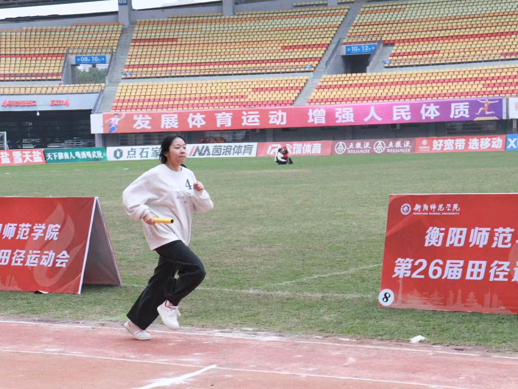 为展现衡师学子青春风采,激发学生主动锤炼体育素养的热情,11月11日,衡阳师范学院于衡阳市体育中心举办了第26届田径运动会开幕式。上午8点,伴随着激昂的音乐声,开幕式正式拉开帷幕,各学院方阵队依次入场——文学院方阵队百余名成员迈着整齐矫健的步伐,喊出“知行并进,以文化人;守正创新,勇担重任。德才兼修,以教立身;矢志报国,不负青春。”的响亮口号走向主席台,将“知行并进,以文化人”的学院风貌展现得淋漓尽致。