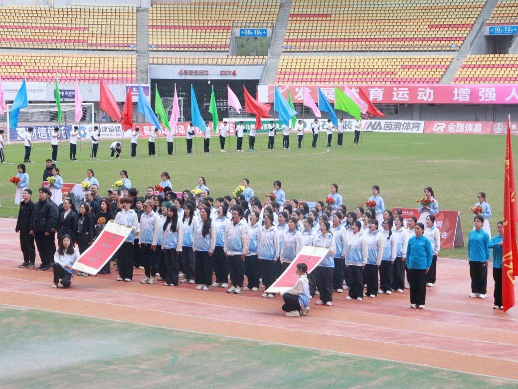 聂东明副校长开场致辞时指出,本届运动会是落实五育并举的育人课堂,更是凝聚校园精神的纽带——去年衡师体育屡创佳绩,国赛摘金、省赛斩获32金,尽显衡师人敢拼底色。他呼吁师生跳出“旁观者”身份,以拼搏、奉献共赴这场体育嘉年华,让奥运精神融入校园,并预祝赛事圆满,盼这份昂扬斗志助力学校高质量发展。