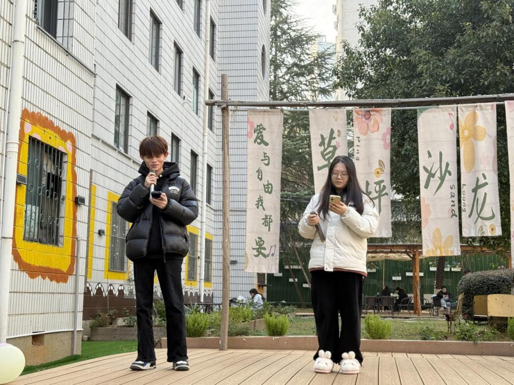 固定演唱的余韵尚未消散,自由演唱环节便如约开启,瞬间点燃了全场的热情火焰。文院学子们纷纷举手、踊跃登台,让歌声成为此刻最鲜活的语言:有人即兴开唱,用灵动婉转的旋律勾勒出独属自己的舞台风采;有人邀约挚友并肩合唱,和声交织间,同窗情谊也随音符缓缓流淌;还有人点唱新年主题曲目,将对彼此的美好祝愿,都揉进了悠扬的歌声里。没有预设的脚本,唯有随心而发的欢唱,此刻的衡师里,成了歌声翻涌的海洋。每一段旋律,都藏着对旧岁的温柔不舍;每一句歌词,都盛满对新年的无限憧憬。