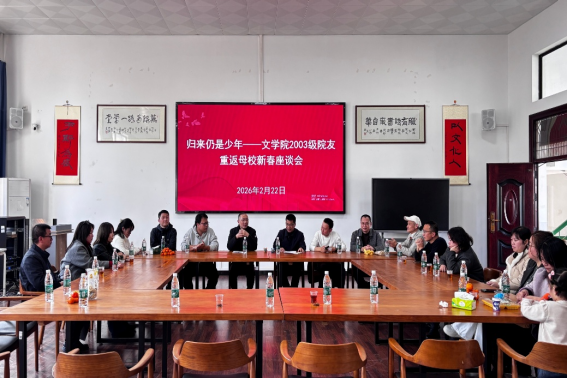 2026年2月22日,衡阳师范学院文学院校友座谈会于西校区学奎楼芜绿堂温情启幕。本次活动邀请2003级原中文系优秀校友代表重返母校,与文学院领导师生欢聚一堂,共同追忆青葱年华,畅谈成长感悟。文学院党总支书记彭震、院长任美衡、副院长文玲、办公室主任王颖出席座谈会。