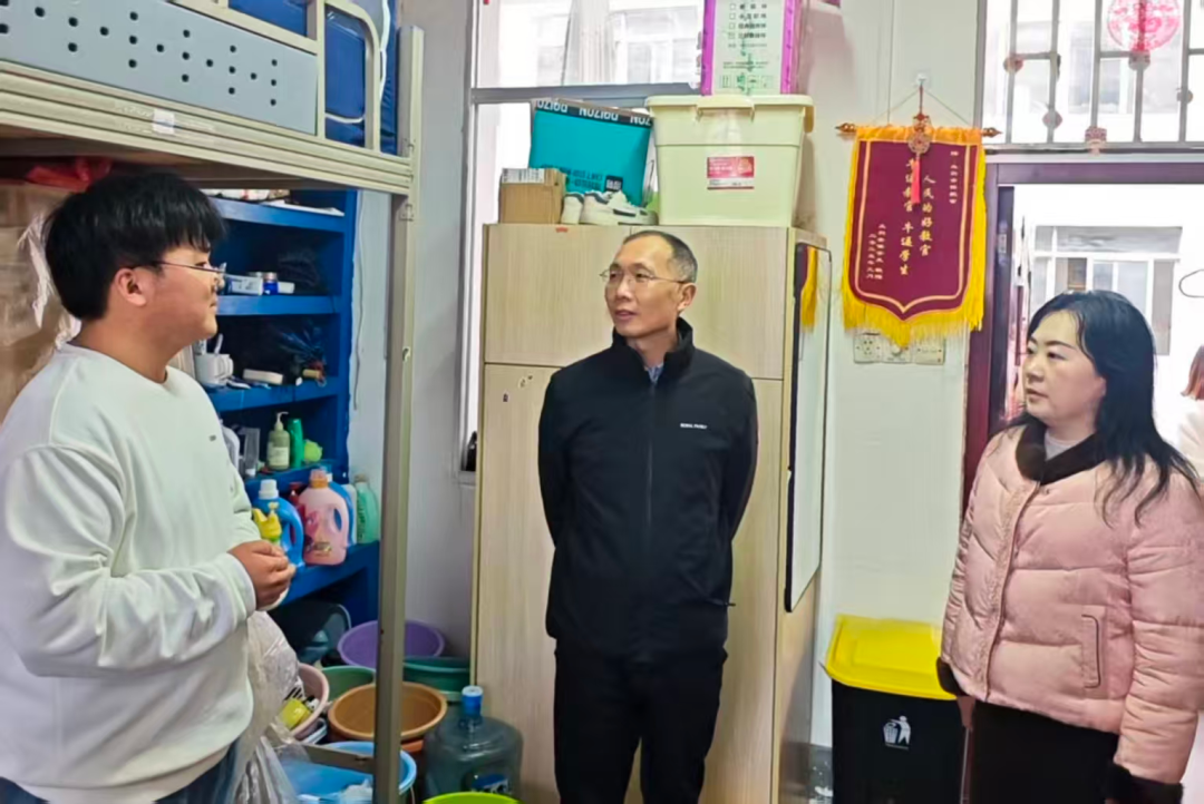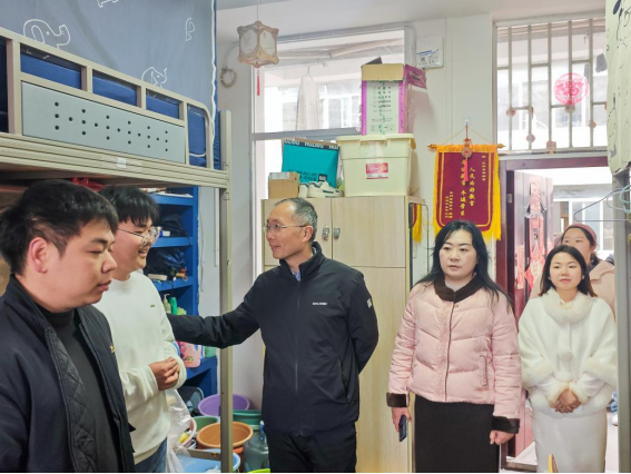 3月6日,在文学院党总支书记彭震的带领下,老师们一起深入学生宿舍走访。在日常教育引导中,老师们始终倡导同学们践行劳动精神,在亲身实践中培养良好的生活习惯。此次走访中,老师们欣慰地看到,同学们自觉维护宿舍环境,认真做好内务整理,展现出自律规范、积极向上的精神风貌。老师们提醒大家注意消防安全、财产安全、谨防电信诈骗。此次走访贴近学生日常,让同学们真切感受到学院的细致关注与悉心引导,也进一步增进了师生间的沟通与联系,为新学期各项工作的有序开展奠定了良好基础。