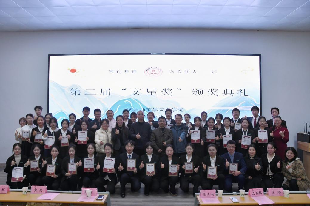 本届“文星奖”颁奖典礼,既是文学院育人成果的一次集中呈现,也是学院“知行并进,以文化人”院训的生动实践。未来,文学院将继续以“文星奖”为纽带搭建更多展示平台,助力更多文院学子在学习、创作与社会服务中坚定方向、行稳致远,让每一位文学青年在创作之路上绽放属于自己的光芒!