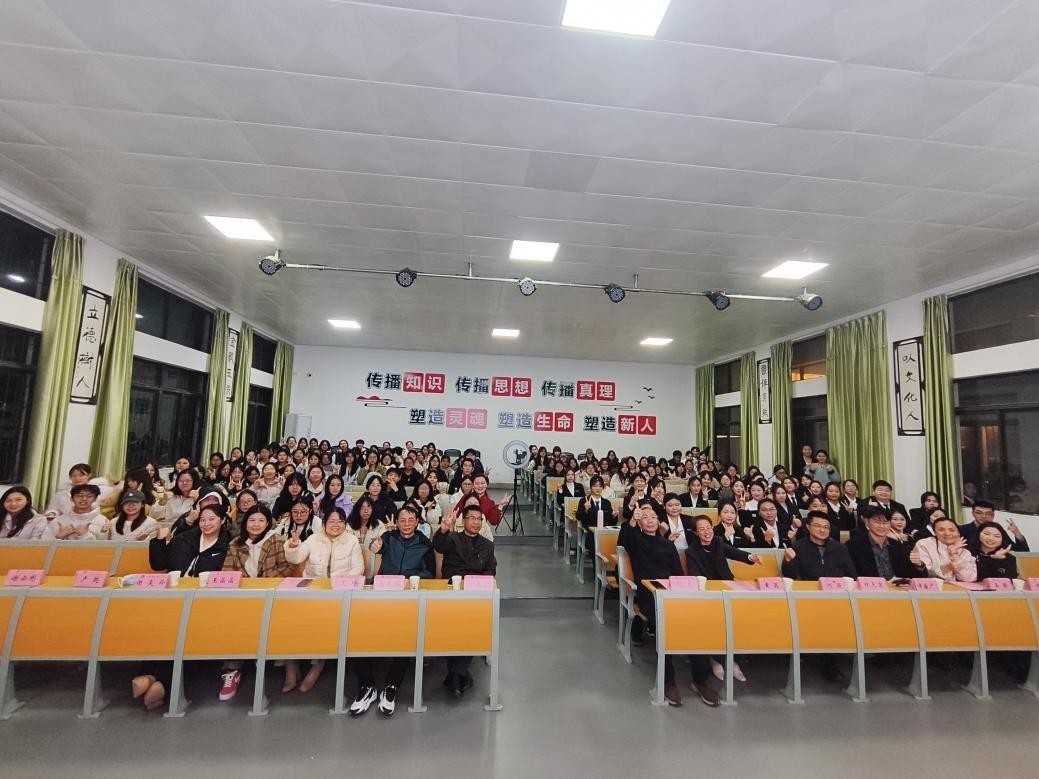 典礼尾声,朗诵节目《师道昭昭,薪火长明》围绕“师道精神”主题展开,从孔夫子周游列国传经布道的千年坚守,到陶行知“知行合一”的教育初心;从张桂梅扎根大山点亮女孩梦想的无私奉献,到童丽芳深耕教坛践行育人使命的躬身实践,通过历史与现实的对照,展现了教师群体在不同时代坚守教育初心、践行育人使命的精神风貌,引导着文院学子在感悟师德力量中坚定理想信念,涵养家国情怀。