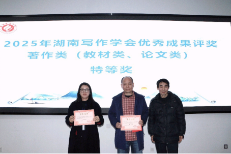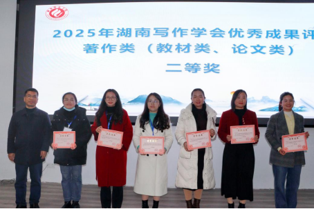闭幕式上,湖南写作学会副会长晏选军和厉行威分别就教师和研究生的学术报告进行了总结,均肯定了代表们学术思考的前沿性、实践性和现实意义。其间,娄底一中附属星星中学的童丽芳老师通过连线形式远程参与,聚焦作文教学实践中的痛点,分享“写真事、说真话、动真情”的写作核心诀窍,为一线教育工作者提供实用指引。会长李作霖在闭幕辞中呼吁全省写作教育工作者主动顺应时代变革,共同推动写作教育事业的高质量发展。最后,会议公布了年度评奖结果并举行颁奖仪式。